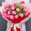 Букет розовых тюльпанов - это миллион поцелуев, которые вы можете подарить свей возлюбленной. Эта яркая и нежная охапка тюльпанов покорит сердце даже самой изысканной дамы, которая привыкла получать только дорогие и красивые вещи.